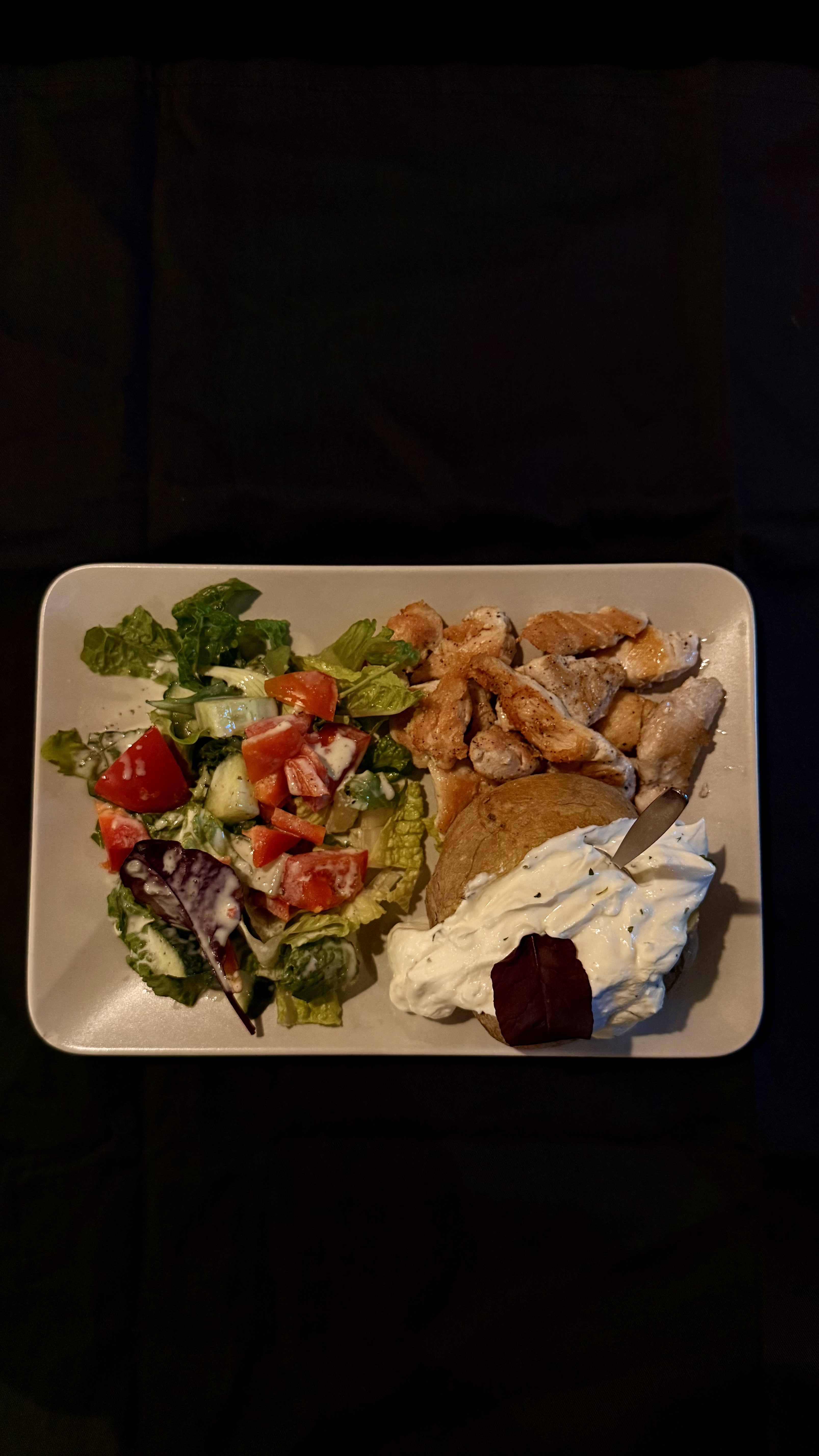 €13.50with herb quark, a small salad, and grilled chicken breast